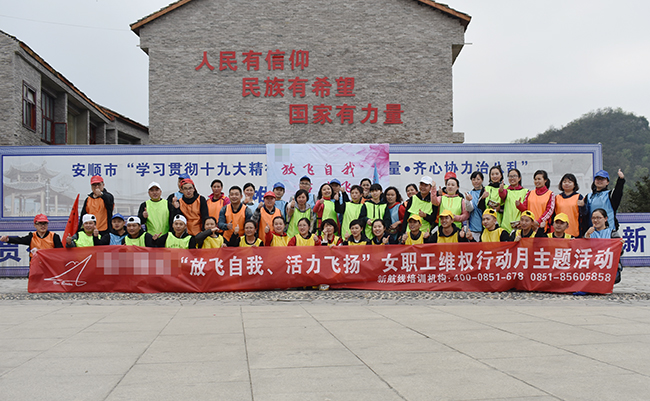 活力飞扬”女职工维权行动月主题活动在镇宁举行,本次活动的主题为女性学员们,所有参训学员在本次拓展当中不仅从各项困难重重的挑战中收获了同事之情以及团结之力,我们的优胜小组还得到了新航线为大家准备好的甜蜜小礼品,相信这也是学员们难忘的一次拓展培训!
