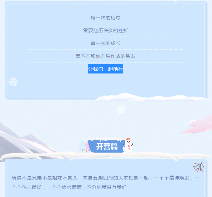 每一次的历练,需要经历许多的挫折;每一次的成长,离不开和你并肩作战的朋友,让我们一起前行。