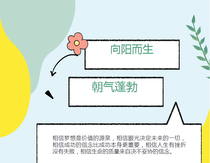 相信梦想是价值的源泉,相信眼光决定未来的一切,相信成功的信念比成功本身更重要,相信人生有挫折没有失败,相信生命的质量来自决不妥协的信念。