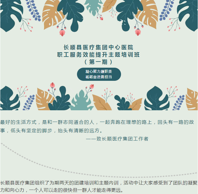 2024年6月20-21日长顺县医疗集团中心医院职工服务效能提升主题培训班(第一期)