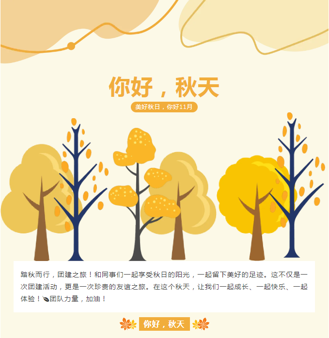 踏秋而行,团建之旅!和同事们一起享受秋日的阳光,一起留下美好的足迹。这不仅是一次团建活动,更是一次珍贵的友谊之旅。在这个秋天,让我们一起成长、一起快乐、一起体验!🍂团队力量,加油!