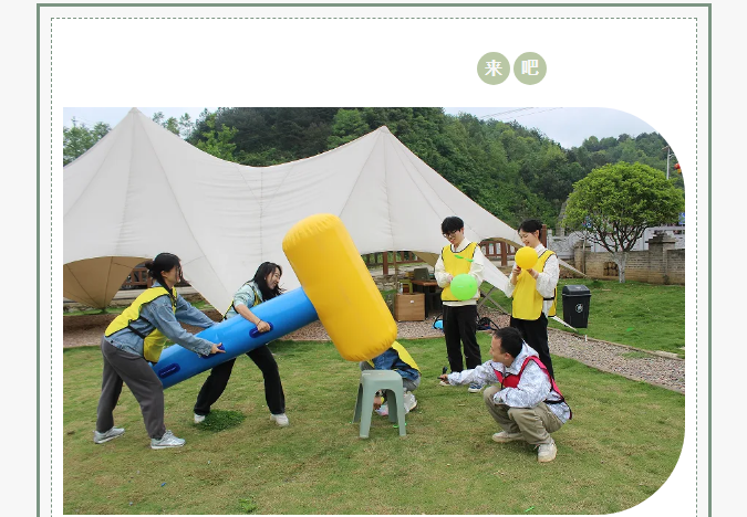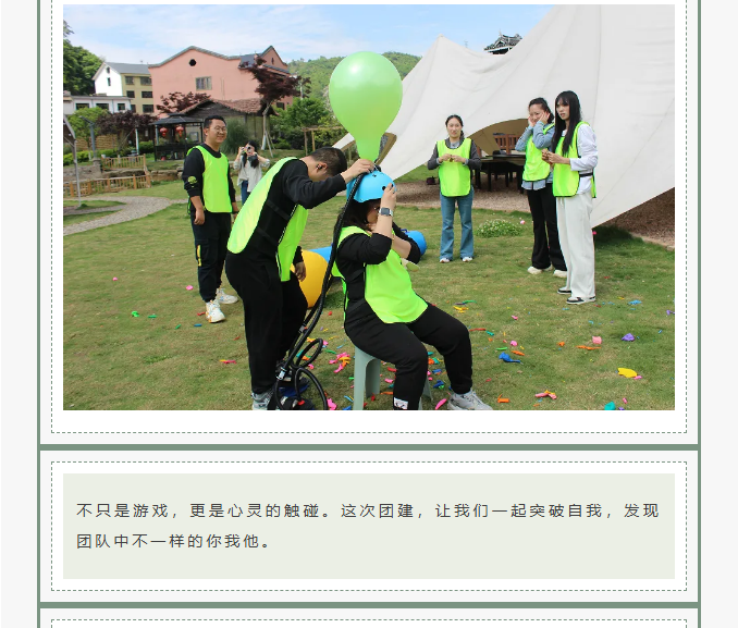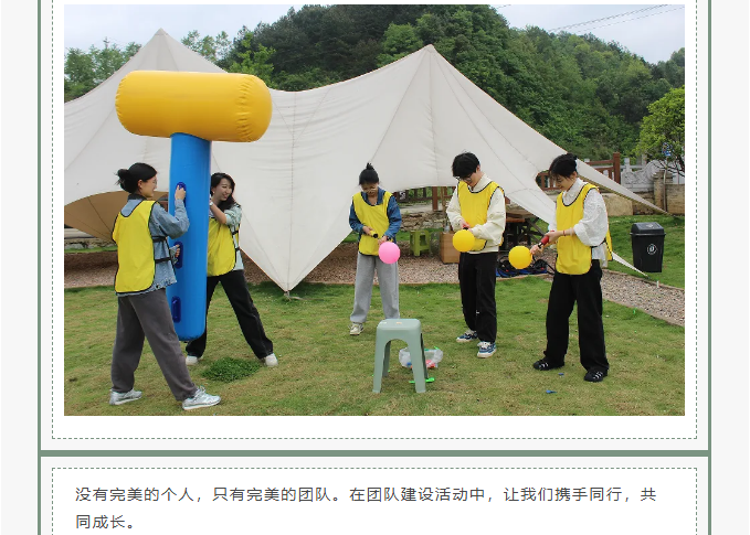 释放压力,享受快乐:在轻松愉快的团建活动中,我们释放压力,享受快乐。每一次参与,都将为团队带来无尽的欢笑,让我们一起创造难忘的美好时光!让我们在开心的团建活动中,共同成长、共创辉煌!让团队的力量助你实现更大的目标!