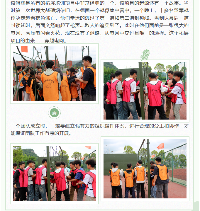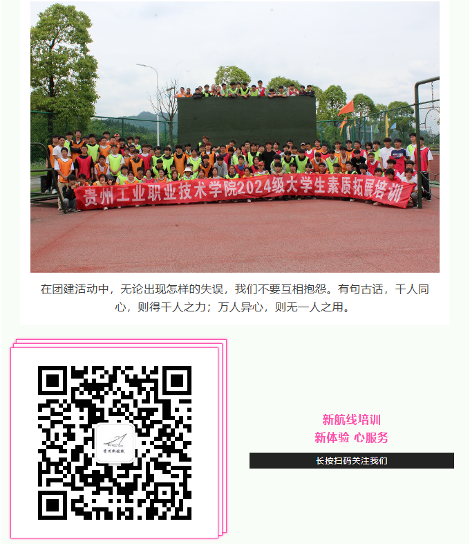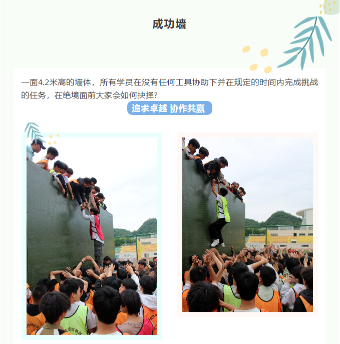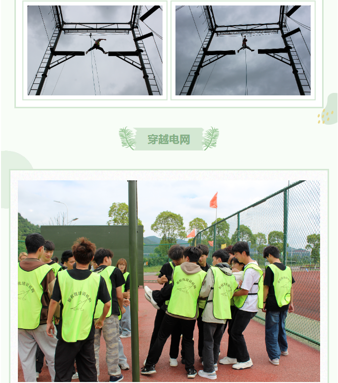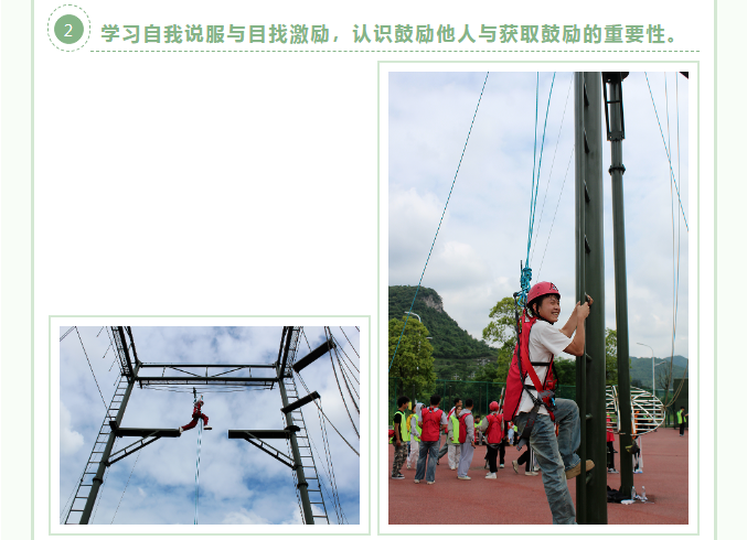 新的挑战,新的起点,这就是我们拓展训练的魅力!每天都在突破自我,不断发现新的可能性。感谢同学们的陪伴,我们一起并肩闯过一个个险关!